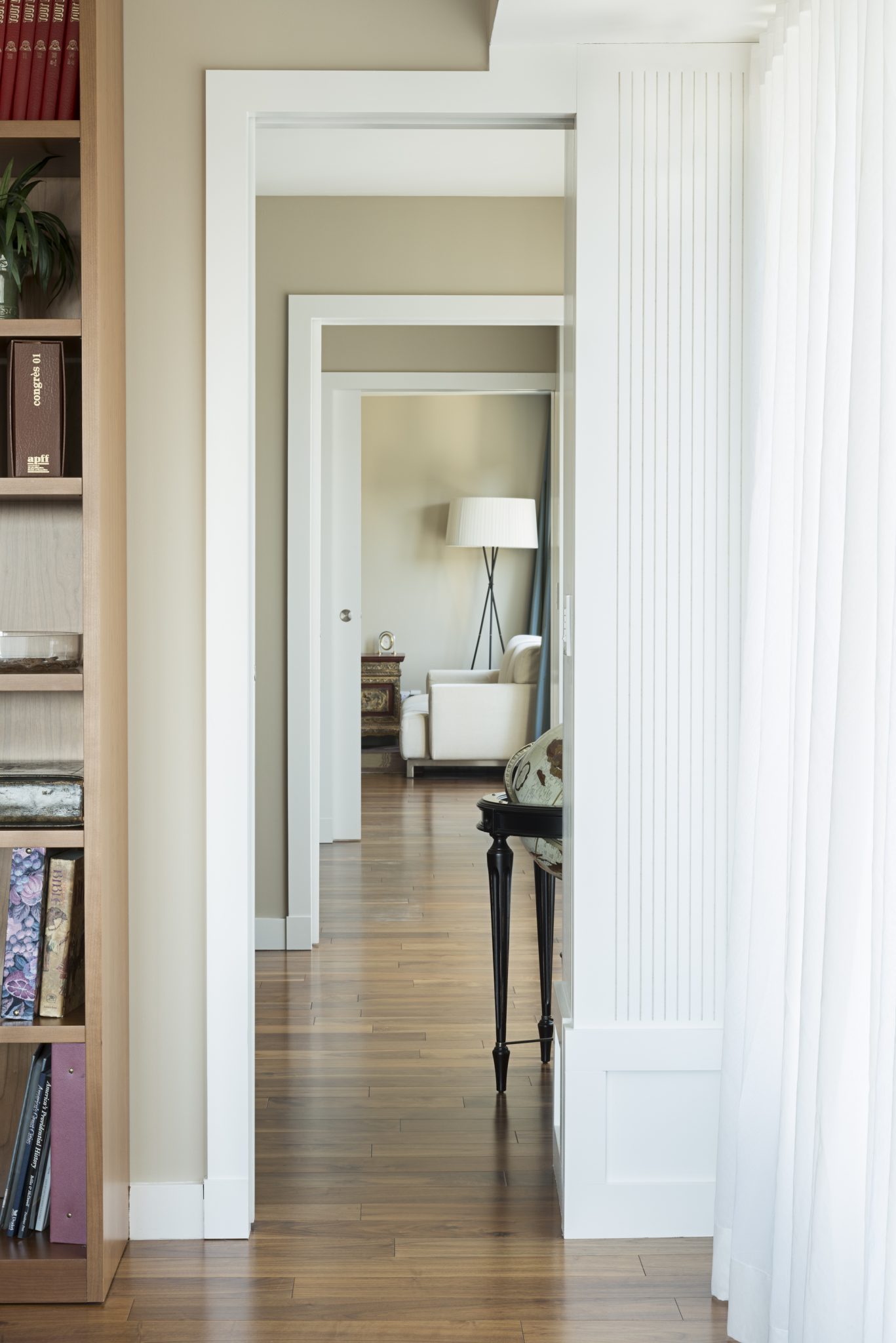 Situé dans l’un des plus prestigieux édifices du Vieux-Montréal, le projet de la résidence Fréchette consistait à actualiser l’aménagement d’une unité de condominium datant du milieu des années 90. De manière à actualiser l’aménagement, toutes les cloisons ont été abattues afin de réaliser de nouvelles subdivisions mettant en valeur les différentes vues que propose l’appartement. De manière à maximiser l’effet de grandeur, l’ensemble des pièces a été positionné en enfilade, de manière à accentuer la présence de la fenestration dans l’espace de vie.